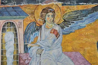 Ikona Belog Andjela Izvrsno. Ona pokazuje na prazan grob, što znači da je isus vaskrsao. Konac za brojanice, perle za brojanice, krstići za brojanice. Beli anđeo se nalazi u manastiru mileševi.